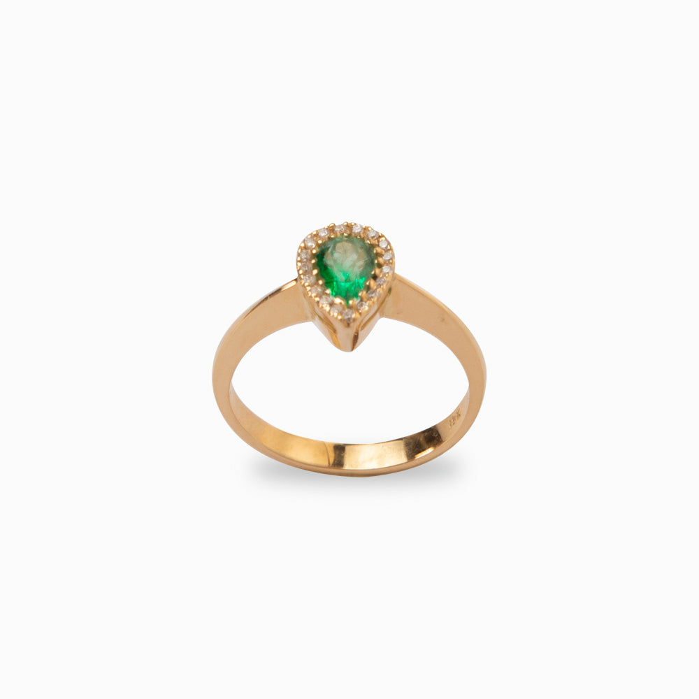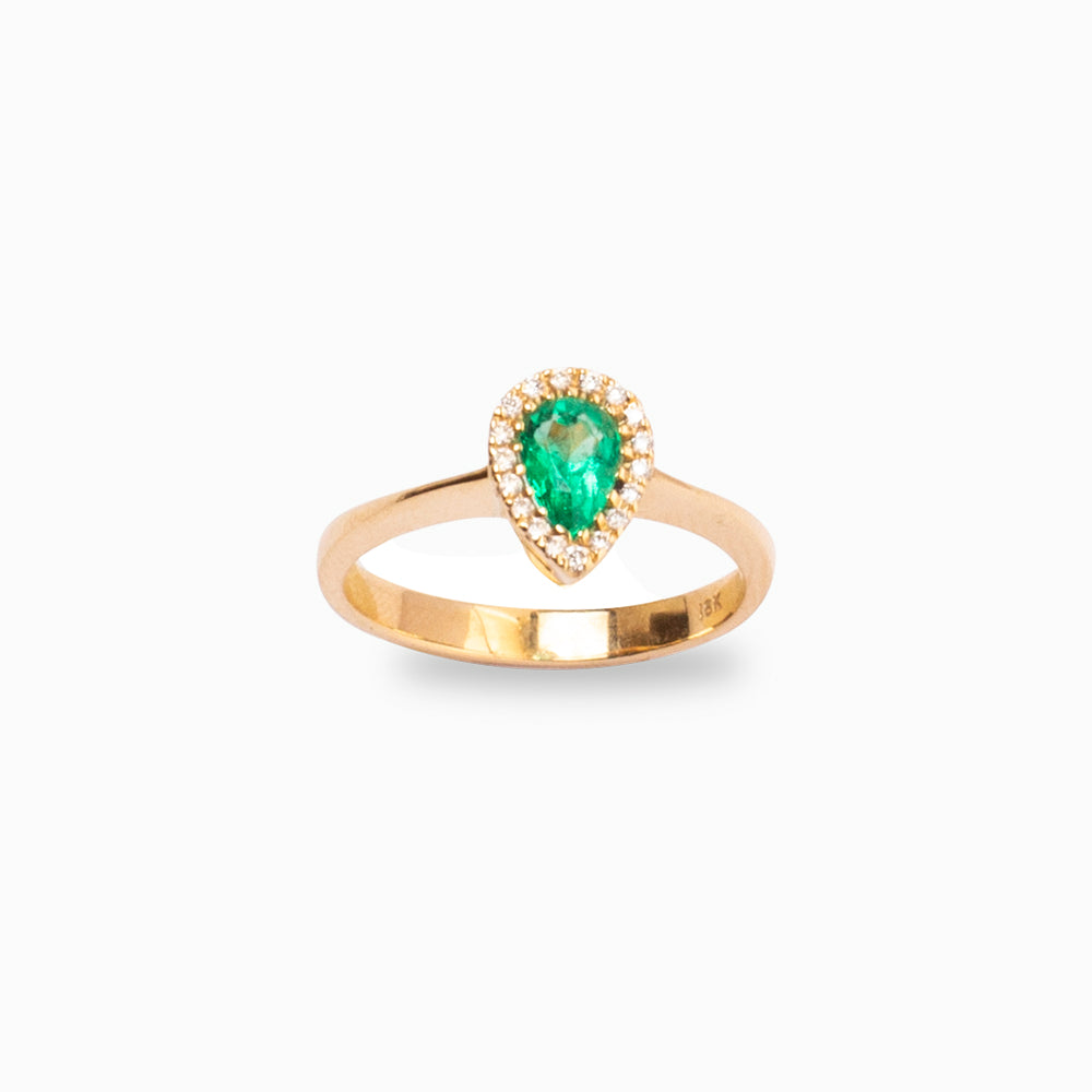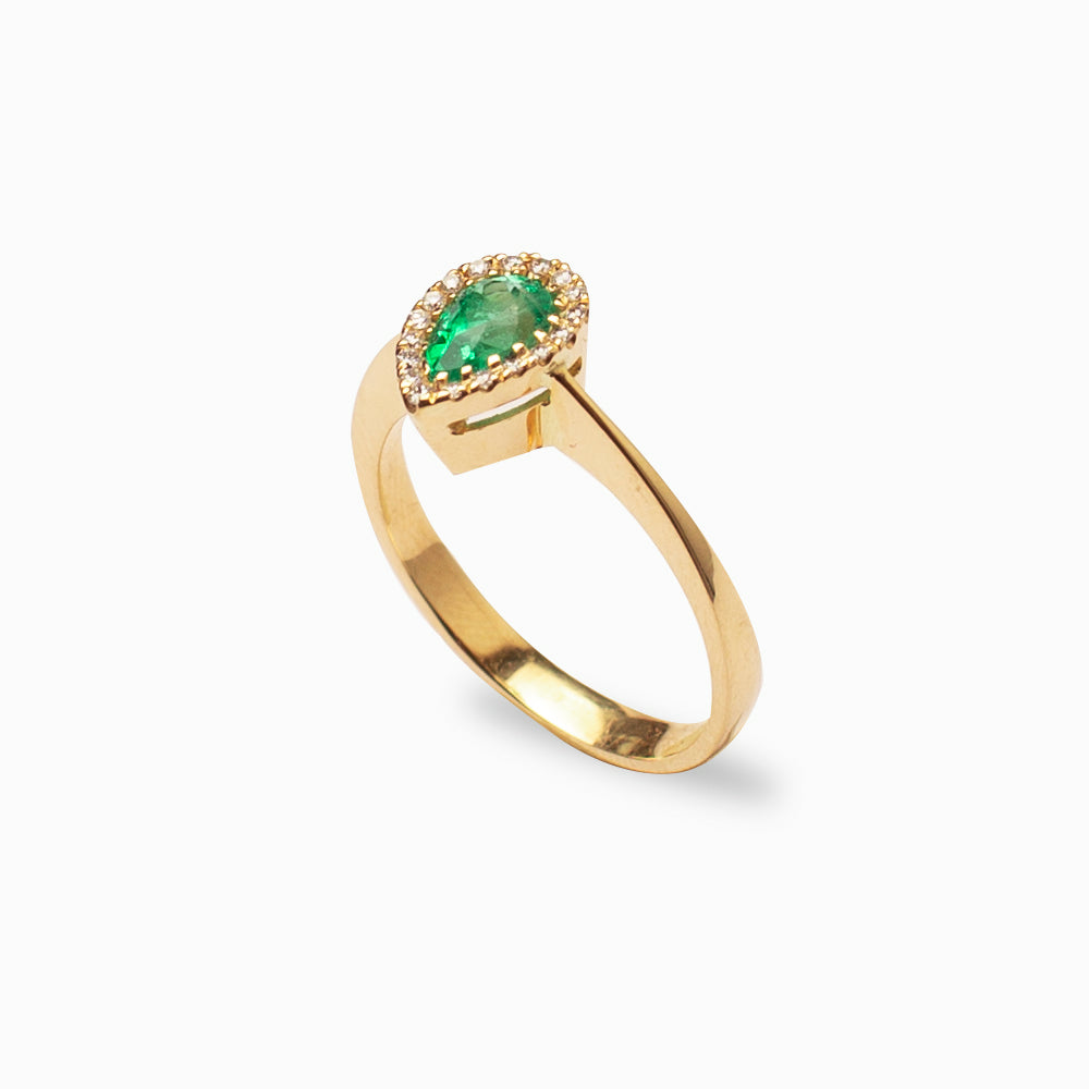 Anillo Fluido de Oro de 18 quilates con una (1) esmeralda colombiana ovalada natural y 18 diamantes naturales
