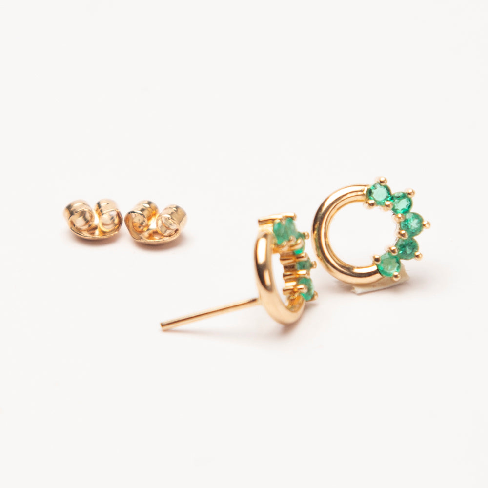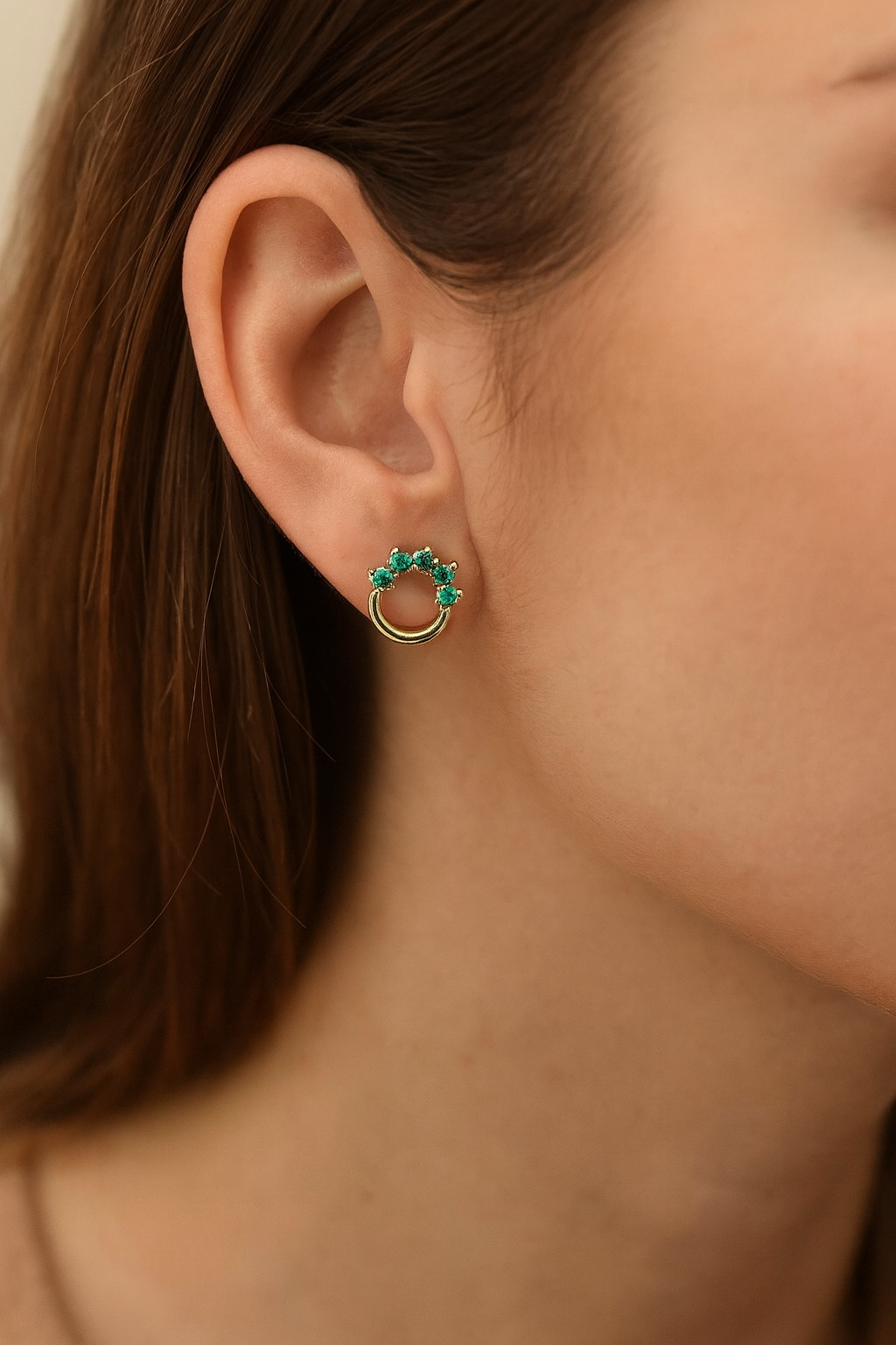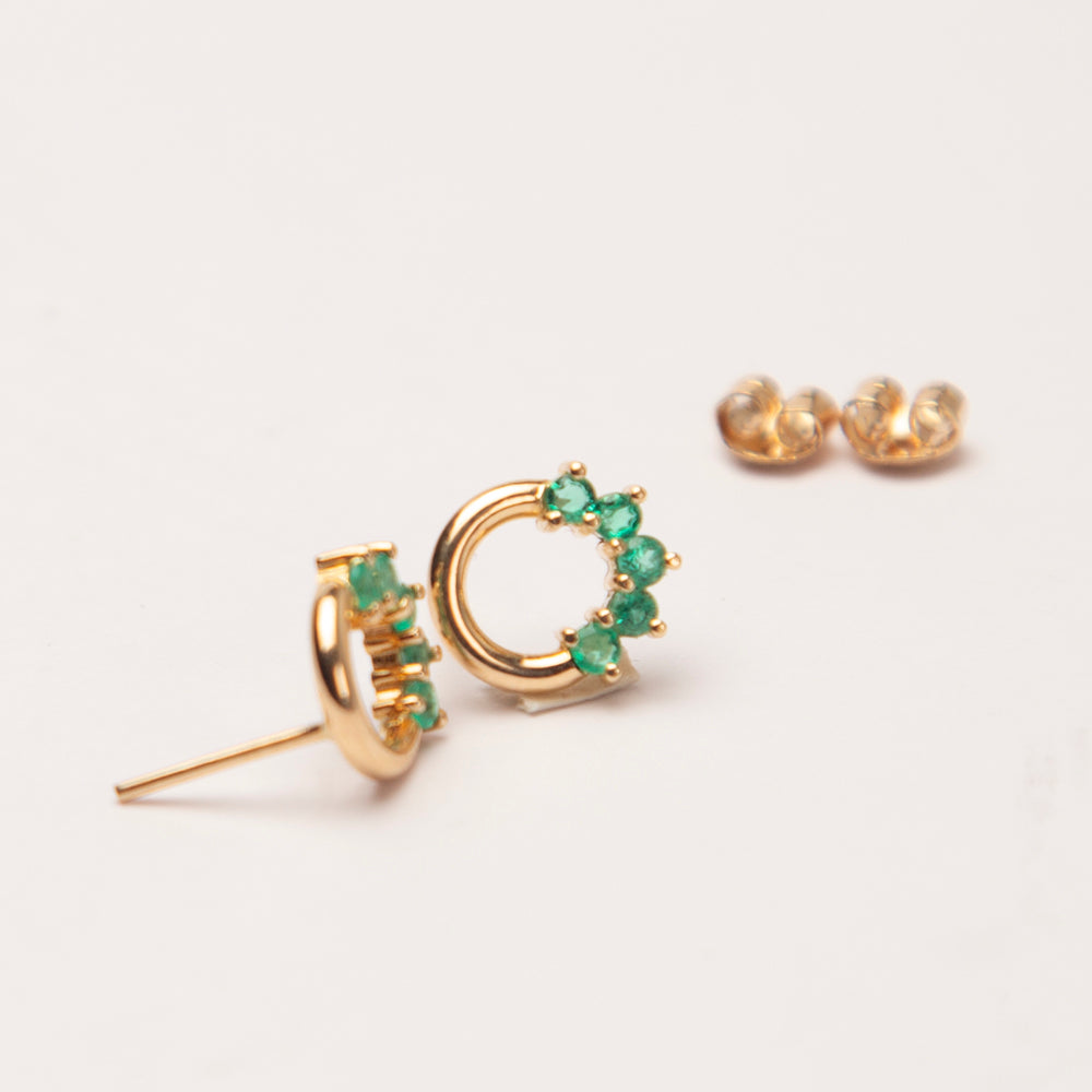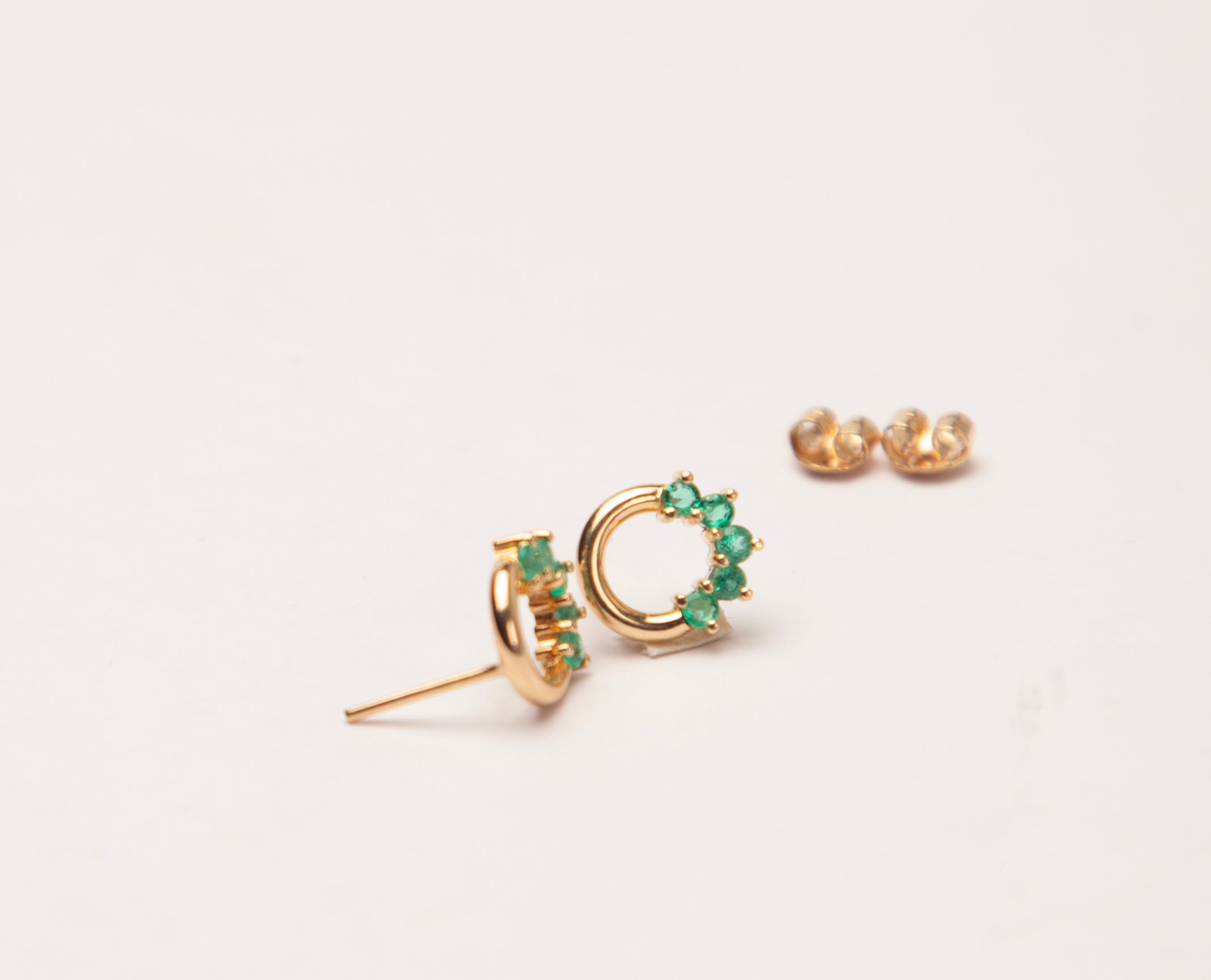 Arete fluido de oro de 18 quilates con cuatro (4) esmeraldas colombianas redondas naturales