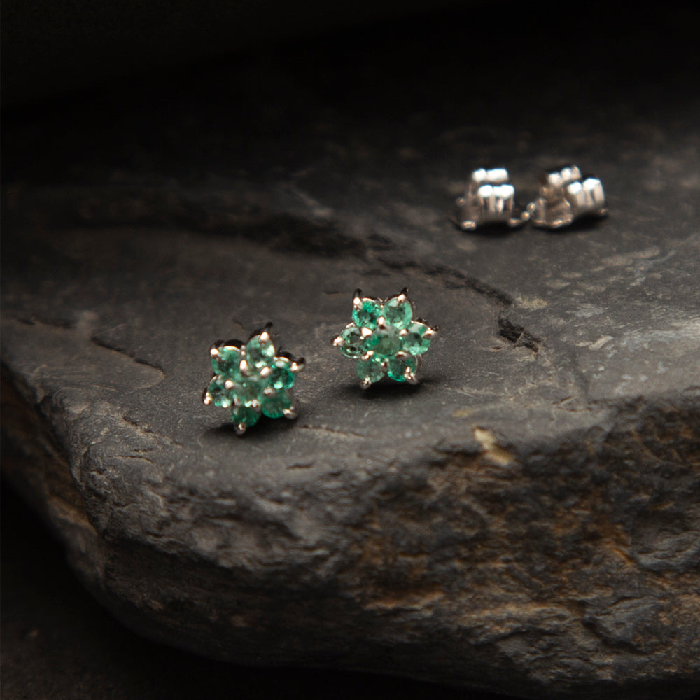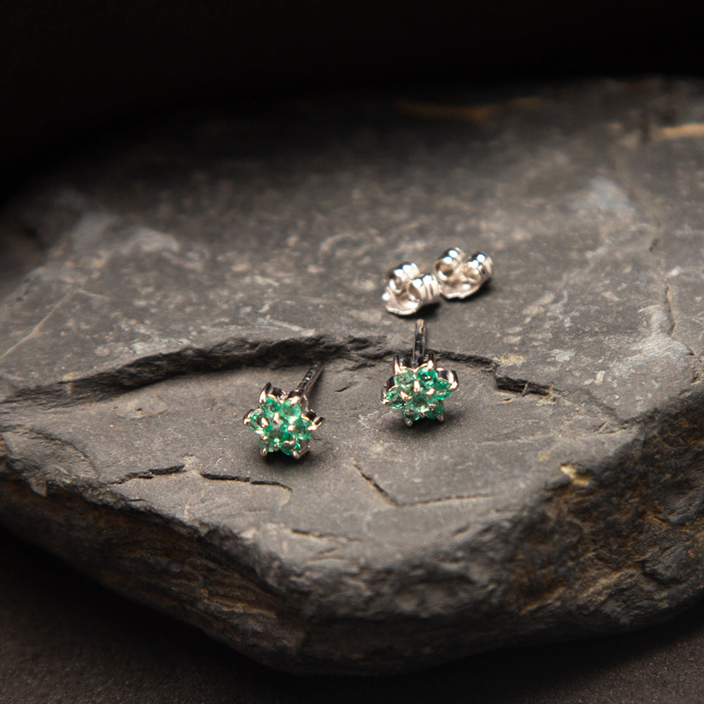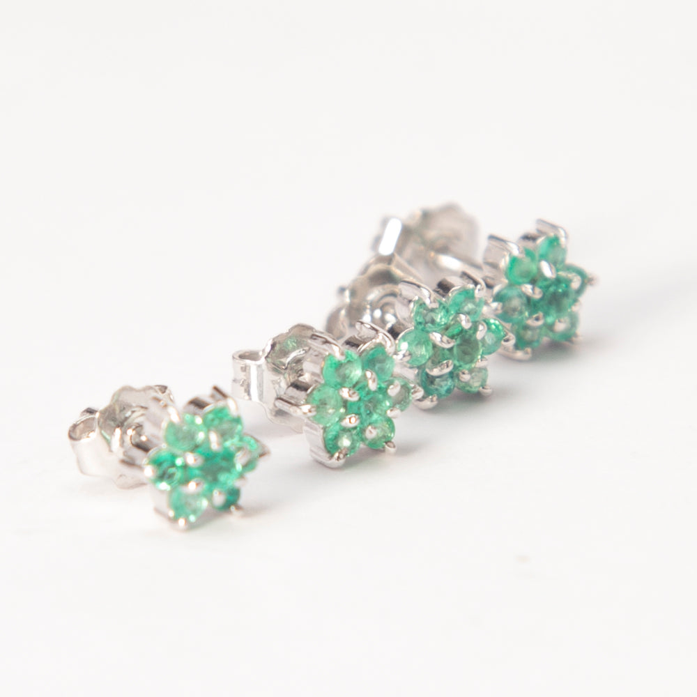 Silver Fluid Stud with Fourteen (14) Natural Colombian Round Emeralds